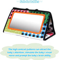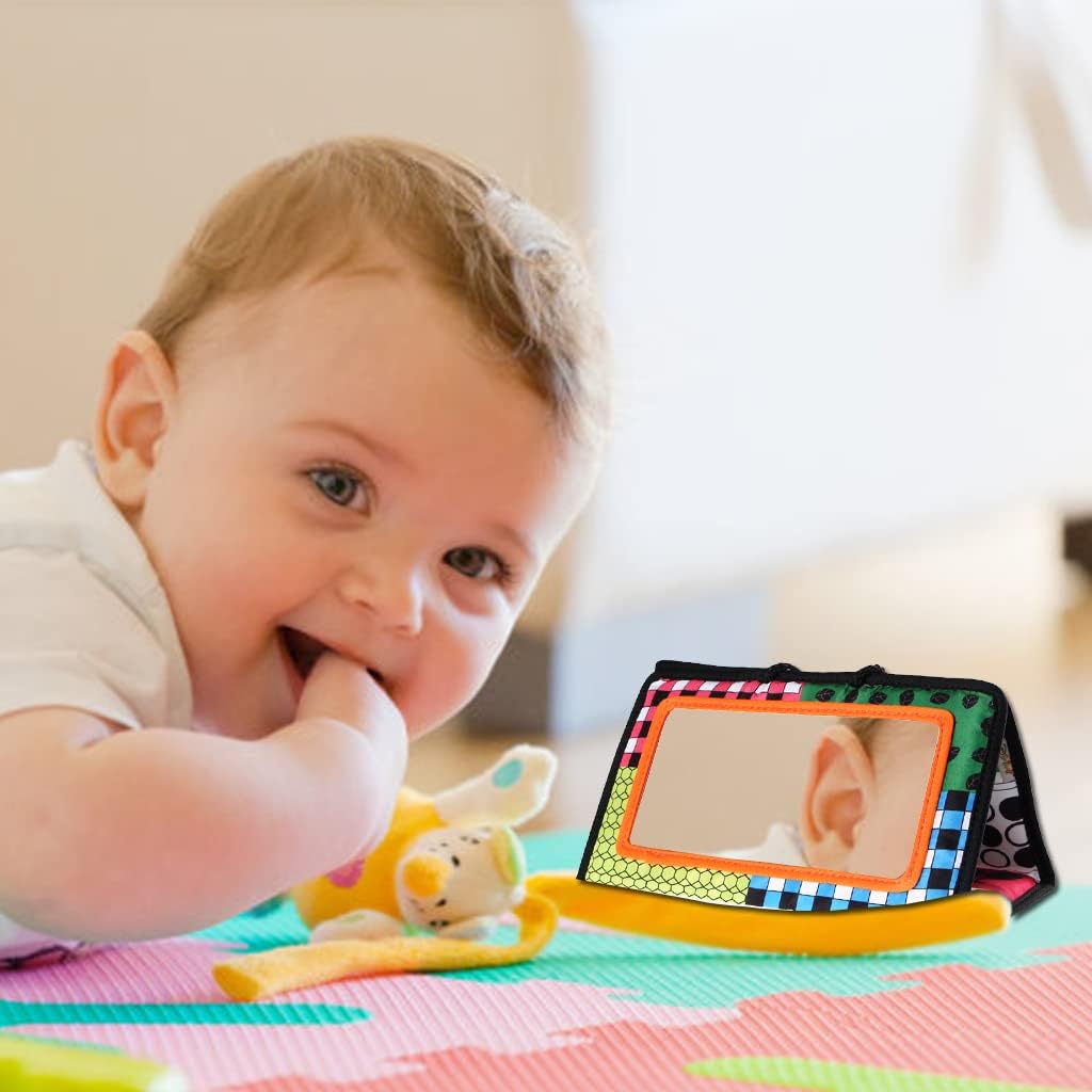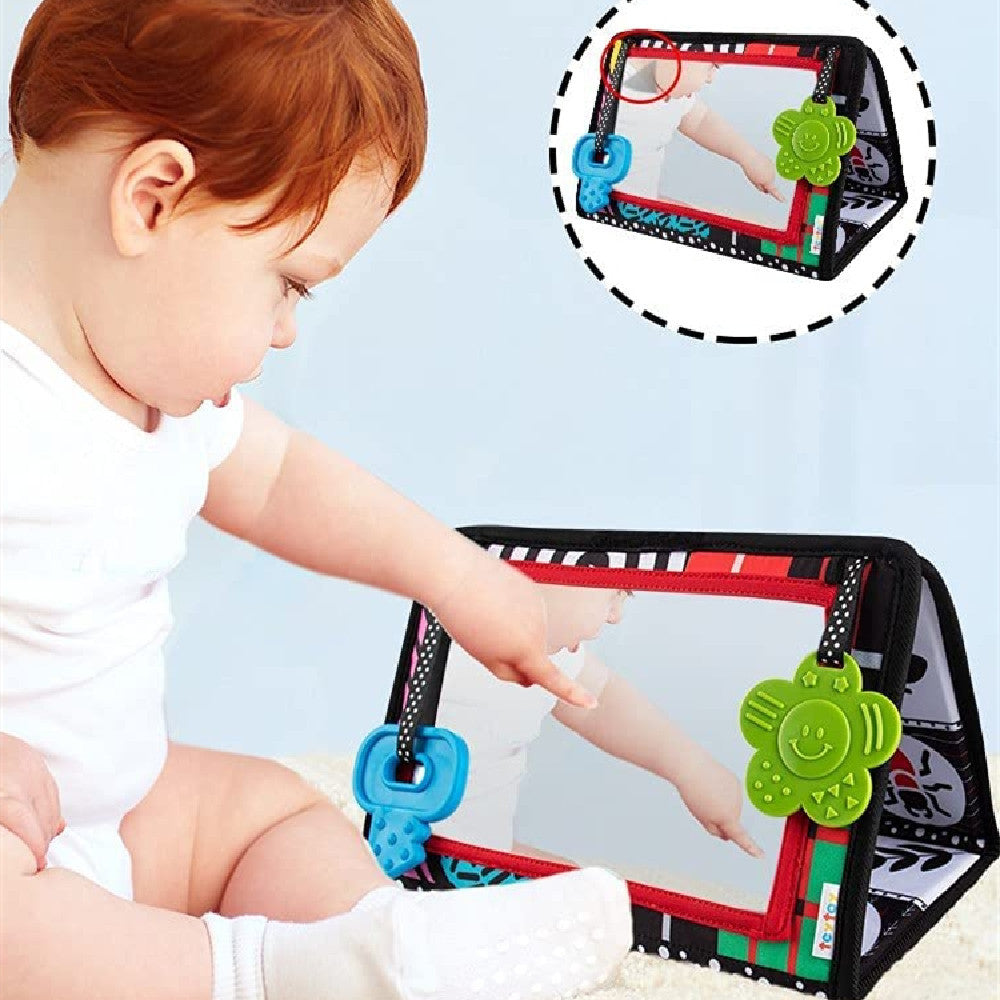 - Removable Crinkle Cloth Book: The toy includes a removable crinkle cloth book that attaches to the mirror with secure buckles. This interactive book features contrasting patterns and colors, stimulating cognitive development and sensory exploration.