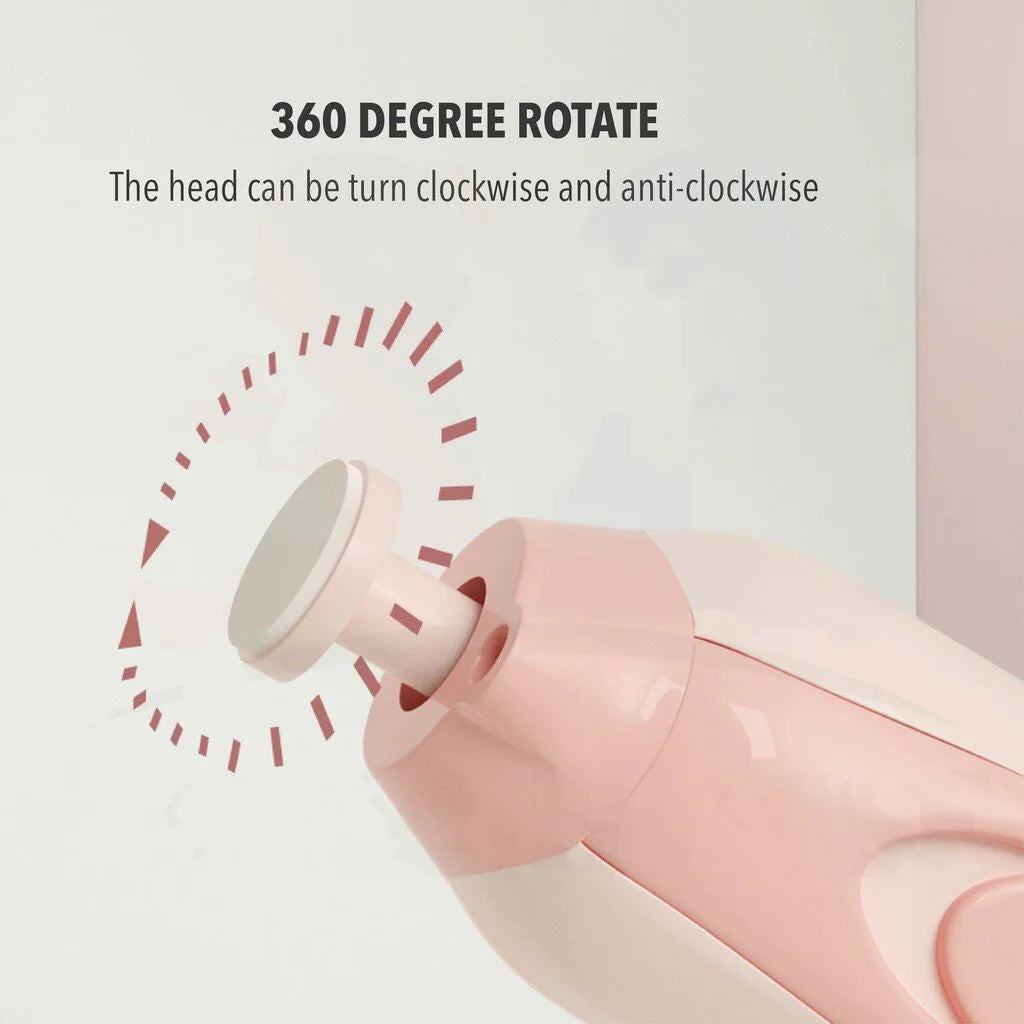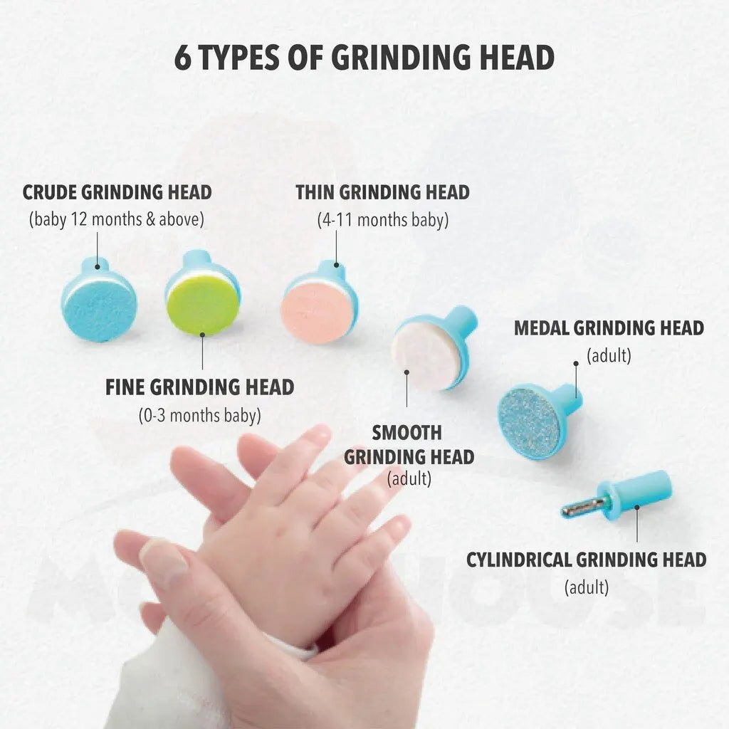 - Versatile and Safe Design: Equipped with six different grinding heads, this nail grinder allows you to choose the most suitable one for your baby's needs. Its ergonomic design ensures easy handling, while the 360-degree rotation feature allows the head to turn clockwise and anti-clockwise for added convenience. Designed to be safe for use on both finger and toe nails, it provides gentle and effective nail care without any discomfort for your little one.